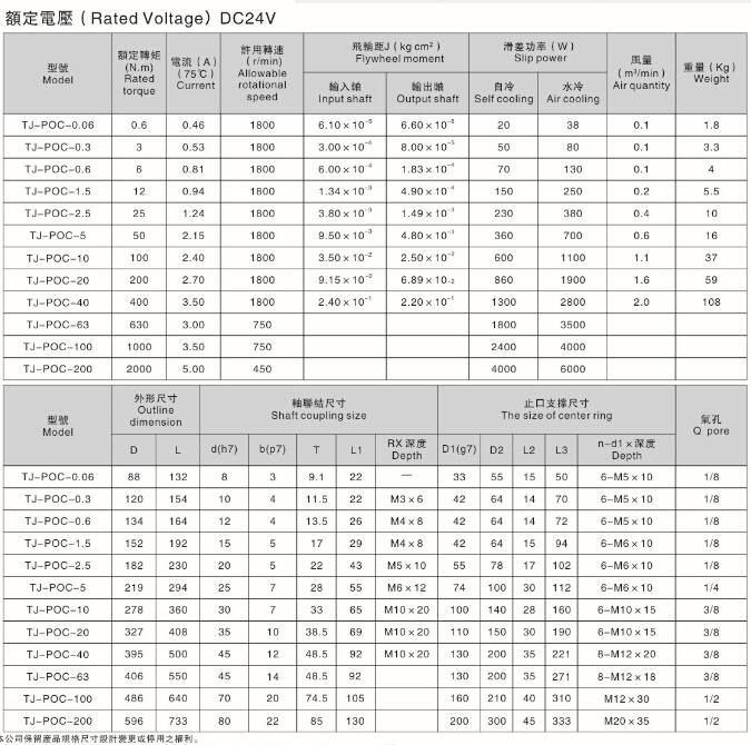 空心軸磁粉離合器TJ-POC-A產品簡介: 【臺灣天機】空心軸磁粉離合...