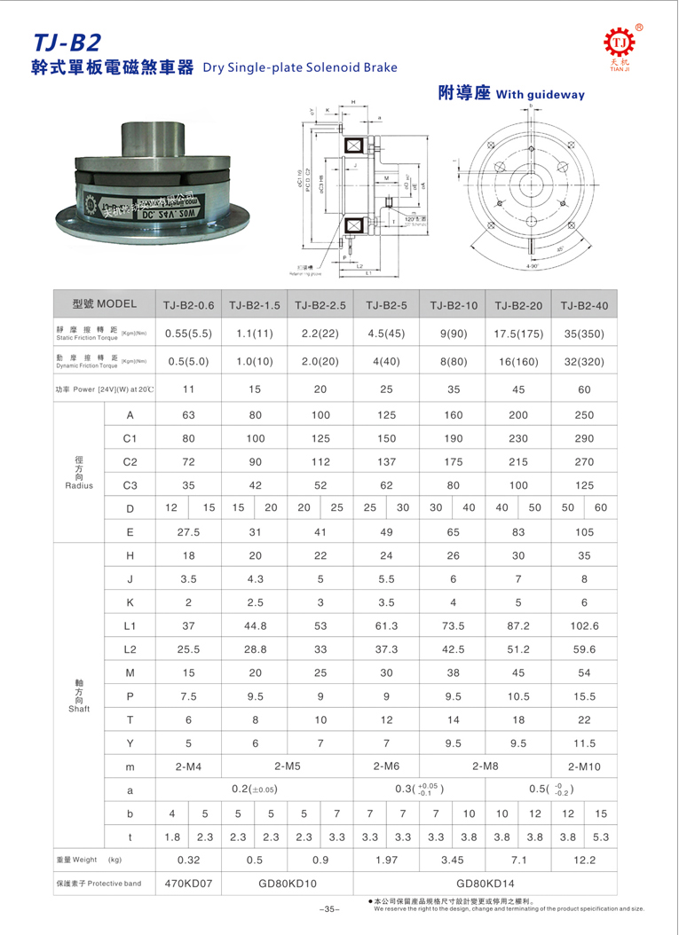 【天機傳動】該型(TJ-B1)單片式電磁制動器(剎車器)是一種將軸或回轉(zhuǎn)體使其制造、停止或者保持的裝置,利用電磁力來動作的傳動件。廣泛應(yīng)用于自動化工作母機、印刷設(shè)備、制造設(shè)備、食品設(shè)備、自動化包裝設(shè)備、紡織設(shè)備、制袋設(shè)備等行業(yè)機械設(shè)備中,適用于停止、制動保持、精確定位、寸動及過載保持等等多用途。