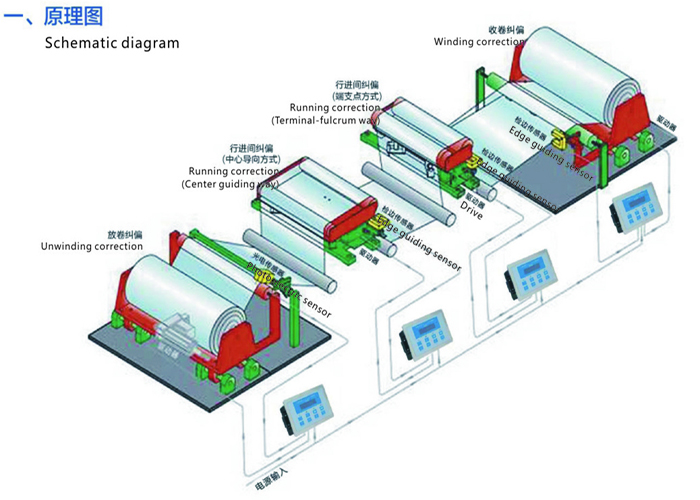 伺服光電糾偏系統(tǒng),糾偏控制器裝置,可根據(jù)卷材的材料以及應(yīng)用的情況,廣泛地應(yīng)用在各種有關(guān)卷取控制的設(shè)備及生產(chǎn)線上,例如印刷機械、標(biāo)簽機、貼合機、造紙機、復(fù)卷機、涂布機、復(fù)合機、塑料薄膜、橡膠機械、印染紡織機械、冶金及電線電纜設(shè)備等需要控制卷邊的行業(yè)設(shè)備。