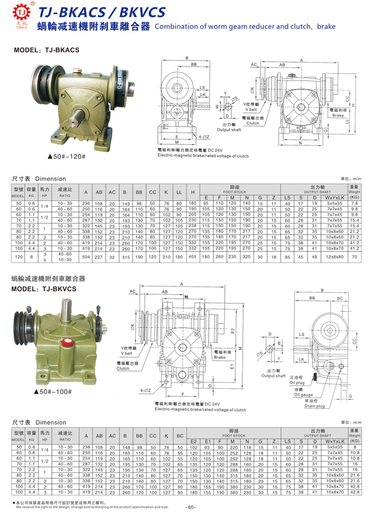 TJ-BKACS電磁剎車離合減速機尺寸規(guī)格如下: